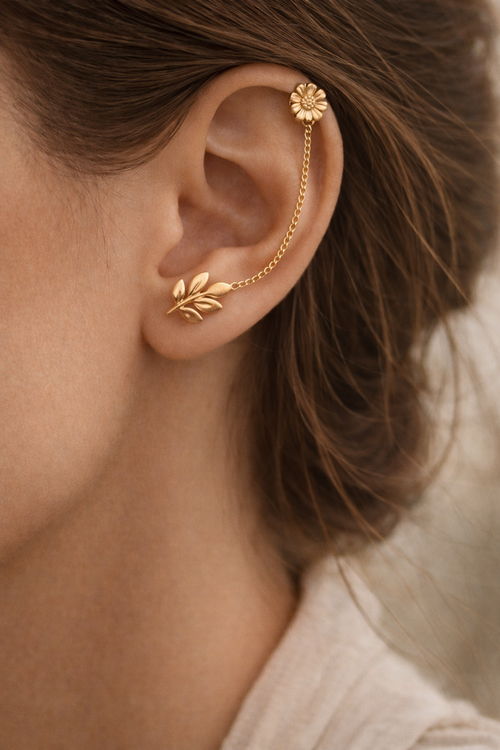 Boucles d’oreilles Fleur Émail Bleu & Or